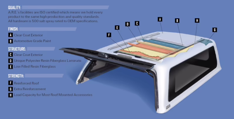 Son la opción más popular en el mercado de consumo por una buena razón. La fibra de vidrio es un material que permite ser moldeado en formas complejas, aerodinámicas y estéticamente agradables. Esto significa que la cúpula puede diseñarse para que parezca una extensión natural y de fábrica de tu camioneta. Se pueden pintar para que coincidan exactamente con el código de color de tu vehículo, logrando una integración visual perfecta. Son robustas, ofrecen un buen aislamiento térmico y acústico, y su acabado liso es fácil de limpiar y mantener.