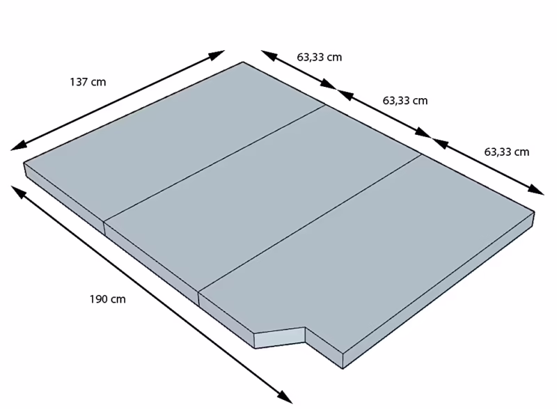 - Formas Irregulares: Es muy habitual encontrar camas con esquinas cortadas, formas trapezoidales para adaptarse a la estructura del vehículo, o camas en V en las furgonetas camperizadas.