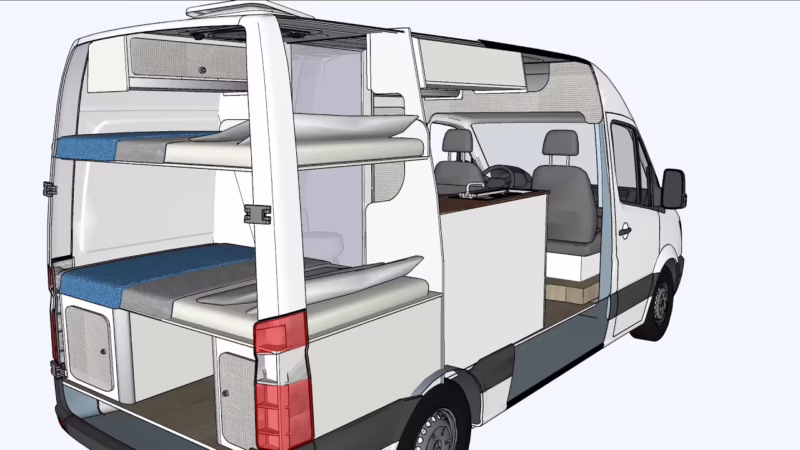 Incluso después de instalar el aislamiento y los paneles en el techo, una Sprinter de techo alto ofrece una altura interior de más de 1,85 metros, suficiente para la mayoría de las personas. Si mides más de 1,88 metros, quizás quieras considerar la Ford Transit, que ofrece la mayor altura interior del mercado, pero para la gran mayoría, la Sprinter es perfecta.