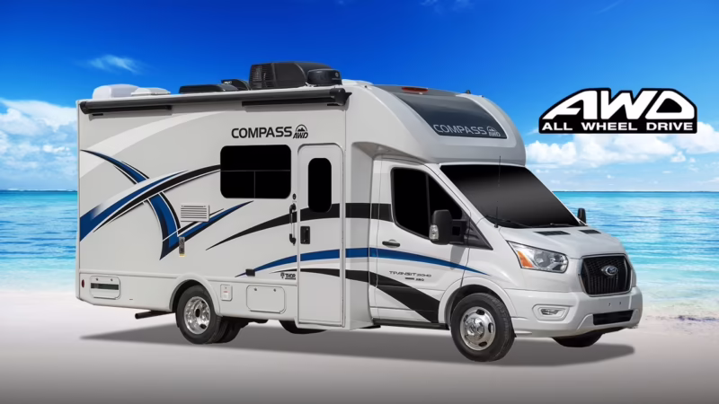 La línea de RVs Compass es fabricada por Thor Motor Coach, una de las divisiones de Thor Industries, el mayor fabricante de vehículos recreativos del mundo.