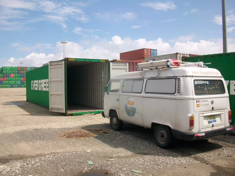 El barco llega al puerto de Colón, a una hora y media de Ciudad de Panamá. Allí necesitarás un segundo agente que gestione la liberación del vehículo. Este agente se encargará de todo el papeleo, los permisos portuarios y te entregará el seguro obligatorio para circular en Panamá. Tras pagar sus honorarios y los gastos portuarios, finalmente podrás reencontrarte con tu casa rodante y continuar el viaje.