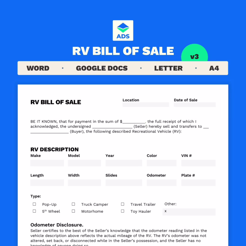 - Marca, Modelo y Año: Por ejemplo, "Winnebago, Modelo Vista, Año 2023".