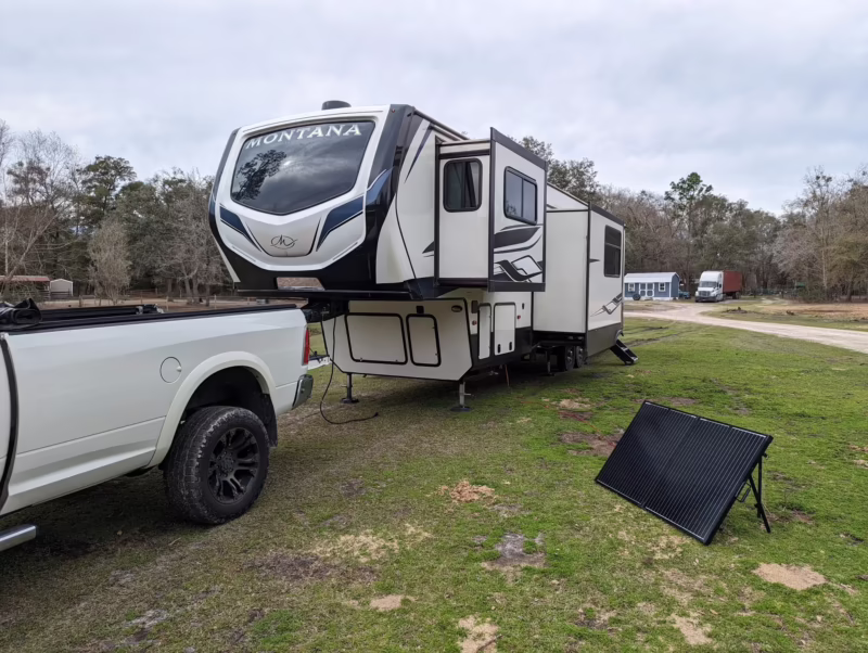 Es fácil enamorarse de una quinta rueda con múltiples slides, una cocina de tamaño completo y una sala de estar espaciosa. Lo que no es tan fácil es asimilar el tipo de vehículo necesario para remolcarla de forma segura. Cuanto más grande y pesada es la quinta rueda, más potente y robusto debe ser el camión. Generalmente, esto significa un camión de servicio pesado (heavy-duty), como un Ford F-250/350, un Ram 2500/3500 o un Chevrolet/GMC 2500/3500, a menudo con doble rueda trasera ("dually").