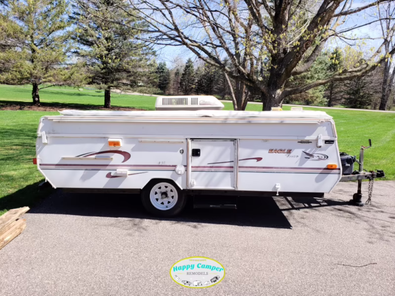Un camper plegable es un tipo de vehículo recreativo remolcable que se caracteriza por su diseño híbrido. En su estado de transporte, es una caja compacta y de bajo perfil, pero una vez en el campamento, se transforma. Su techo se eleva, ya sea de forma recta o en un ángulo que crea una estructura en forma de A, y sus laterales, generalmente de lona resistente, se expanden. Comúnmente, cuentan con camas plegables que se extienden desde los extremos, ampliando significativamente la capacidad para dormir.