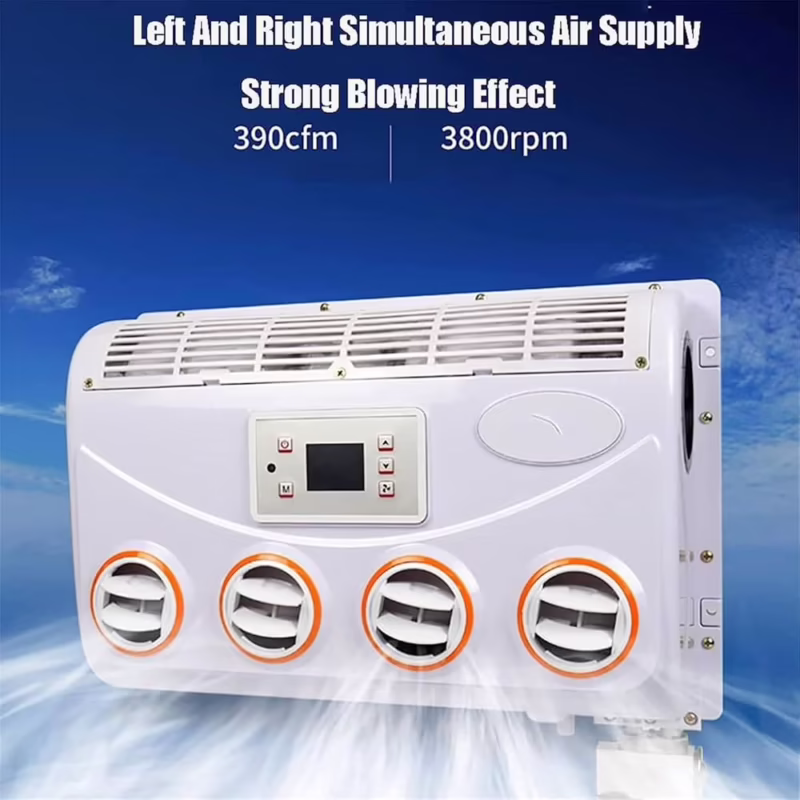 Son la opción más popular y extendida. Como su nombre indica, se instalan en el techo del vehículo, a menudo aprovechando la apertura de una claraboya existente (generalmente de 40x40 cm). Estos equipos son unidades monobloque basadas en compresor, que no solo enfrían el aire de manera muy eficiente, sino que también reducen la humedad ambiental, aumentando la sensación de confort. El aire frío se distribuye directamente desde la unidad interior hacia el habitáculo.