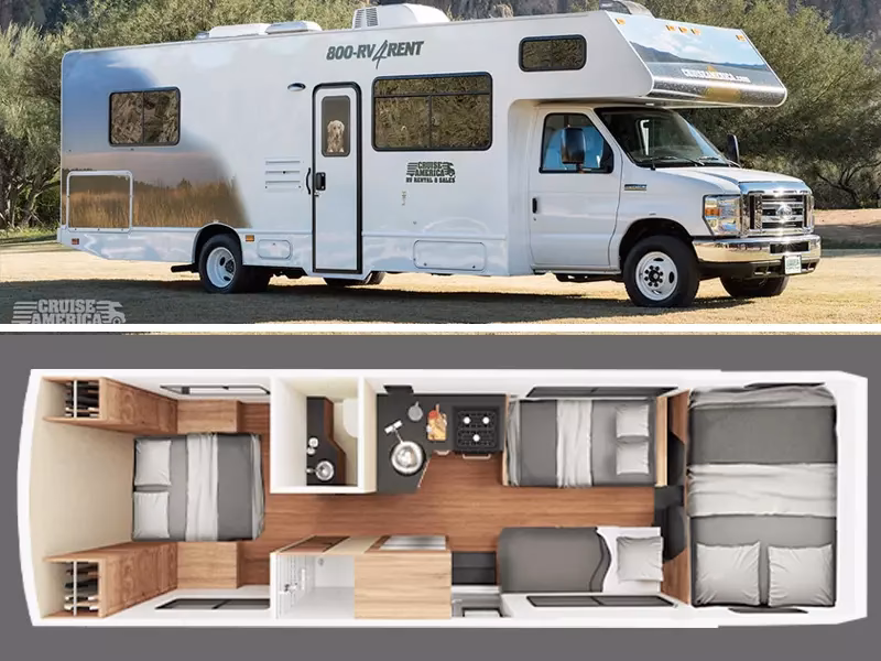 Aluguel de motorhome EUA: preço Quantos passageiros Modelo indicado Valor da diária 3 pessoas El Monte RV Class B a partir de USD 83* 4 pessoas Cruise America C21 a partir de USD 76* 5 pessoas Cruise America C25 a partir de USD 76* 7 pessoas Cruise America C30 a partir de USD 105*