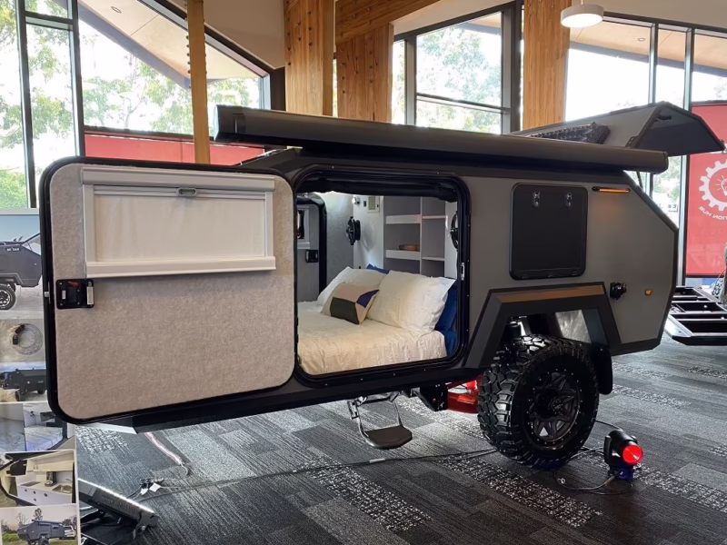 - Pop-up Campers (Remolques Tienda): Remolques ligeros y plegables que se expanden en el lugar de acampada para ofrecer un espacio habitable básico.
