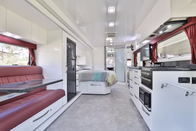 Uno de los mayores desafíos en cualquier casa rodante es el almacenamiento. Wirraway ha abordado este problema con una solución tan ingeniosa como práctica. El Evolution 280 SL cuenta con un sistema único de cajones de almacenamiento y armarios de servicio diseñados para ser accesibles a la altura de la cintura. ¡Se acabó el agacharse o estirarse incómodamente! Cambiar las bombonas de gas, guardar las sillas y la mesa de camping, o acceder a cualquier herramienta es un proceso sencillo y ergonómico. Incluso la barbacoa se despliega a la altura perfecta, lista para usarse en segundos. Esta innovación centrada en el usuario demuestra un profundo entendimiento de las necesidades reales del viajero.